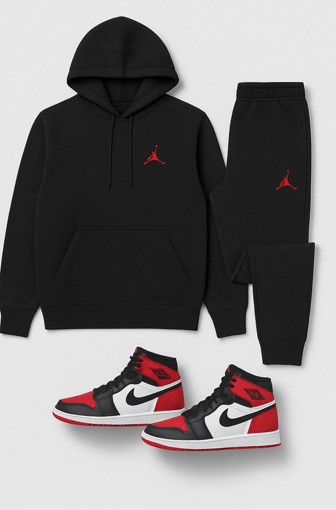 Crafted for comfort and built with iconic streetwear appeal. This complete outfit includes a Jordan hoodie, joggers, and matching sneakers, all made to elevate your game-on and off the court.